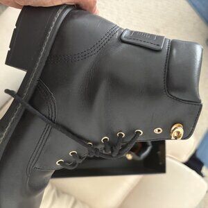 I'M A TRUE SIZE 8 BUT THESE ARE LISTED AT 7.5 B; BLACK LEATHER, VERY WELL MADE