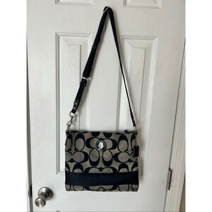 COACH CROSSBODY PURSE ~ Signature Stripe black and tan