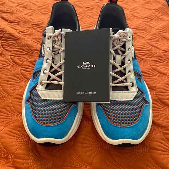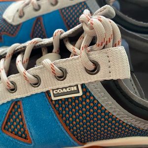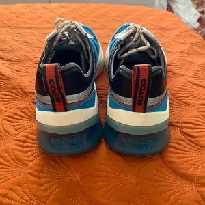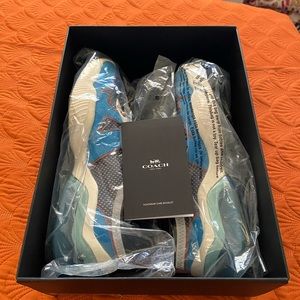 COACH RUNER, EXCELLENT condition, blue jay color, use only 3 times to go out, one scratch on the rubber on the front(see picture) size 10D, very comfortable shoe, smell new, non smoker house, pay half of what I pay, box little bent on top.