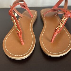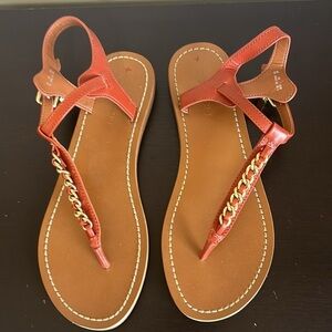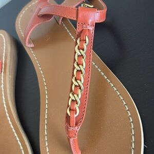 COACH Chain T Strap Leather Sandals Terracota Charm Adjustable Strap Sz 7 NEW