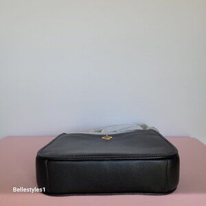 BRAND NEW WITH TAGS. Black color. A stylish minimalist crossbody with top-zip closure for everyday wear to carry your essentials. Designed with a convenient front slip pocket with the iconic turn-lock closure and a secure back zip pocket for easy access. Crafted of polished pebbled leather with a C dangle and a logo hangtag for added detail.