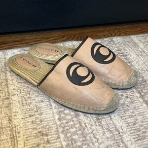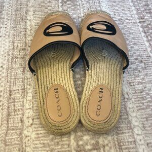 COACH Channing Espadrille Slides Size 10 Beachwood Nude Leather Slip On Sandals