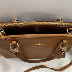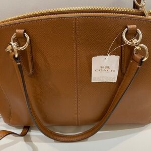 COACH Brown Leather Christie carryall leather satchel. Double handles with 5.5” drop. Detachable crossbody strap. Double zippered compartments. 6.75” x 12.25” x 3.5”. New with tag, never worn condition!