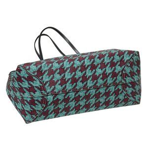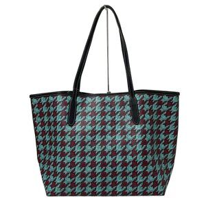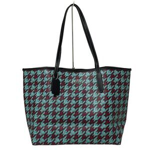 COACH City Tote Hound's Tooth Print CJ626 Blue Green Bordeaux Black PVC -