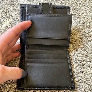Gently worn, black, classic signature "C" pattern, tri-fold wallet with black patent leather trim. Smoke-free home.