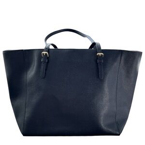 Sophisticated Coach tote in dark blue leather. Features elegant design and spacious interior. Ideal for daily use.
