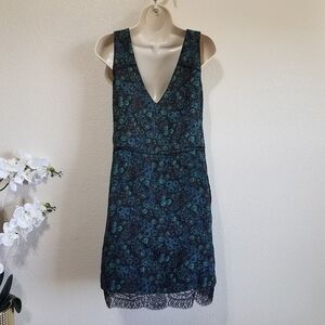 Mini-length retro floral print slip dress from Coach x Viper Room featuring a floral print with lace details, front pockets and side zip closure. Composition: 100% viscose, Lining: 100% cupro. Care: Dry clean only.