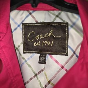 Stylish and vibrant pink Coach coat perfect for any occasion.