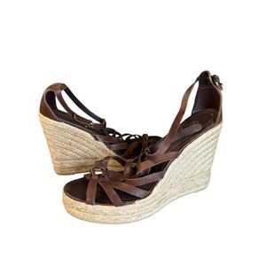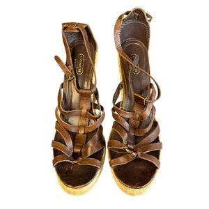 COACH Corina Brown Vegan Leather Chestnut Espadrille Wedge sz 10