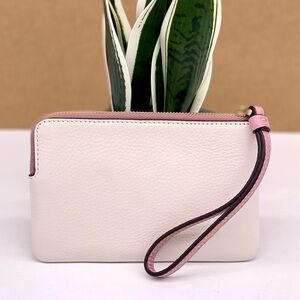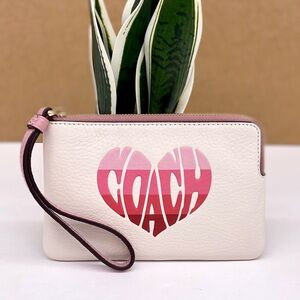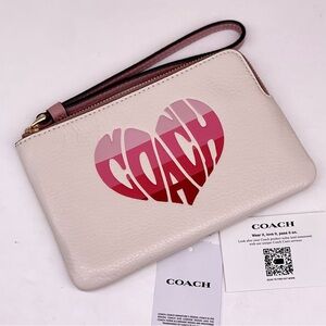 COACH Corner Zip Wristlet Wallet With Stripe Heart Motif