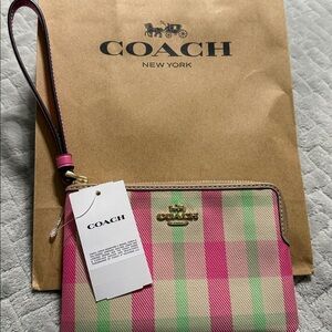 COACH® Corner Zip Wristlet With Plaid Gold/Pink Multi