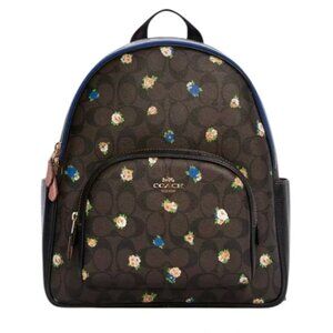 COACH Court Backpack In Signature Canvas With Vintage Mini Rose NWT (Ret 428)