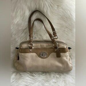 COACH Cream & Tan Penelope 3 Compartment Bag GUC