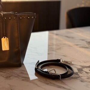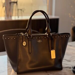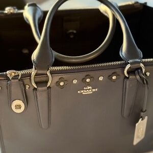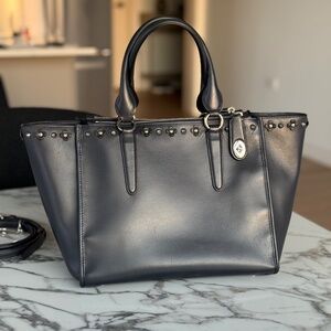 COACH Crosby Carryall with Floral Rivets | Navy Leather | Top Handle/Crossbody