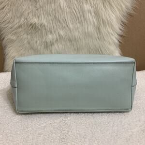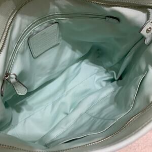 COACH - gorgeous medium to large sized CITY TOTE, crafted from "sea glass" crossgrain leather, with silver hardware. Features: - Dual straps drop 9" - Leather lozenge hang tag - Zip top closure - Grosgrain lining - Interior zip pocket - Two slip pockets - Leather creed - Serial number on small seam tag K1523-F36875 Measurements: 16" across the top tapering to 11.5" at the base, 10" high and 5" deep. Condition: Stunning condition! Probably carried once. No flaws, soil or call-outs! stock #4430152