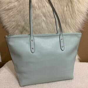 COACH Cross Grain Leather Zip Top CITY TOTE in Sea Glass F36875