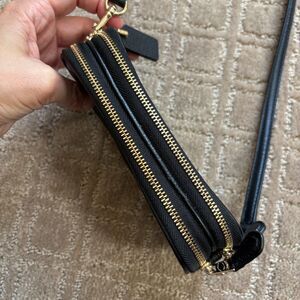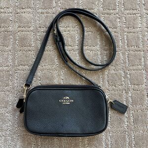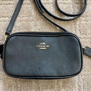 COACH Crossbody Pouch Purse Black Polished Pebble Leather Soft Gold Hardware