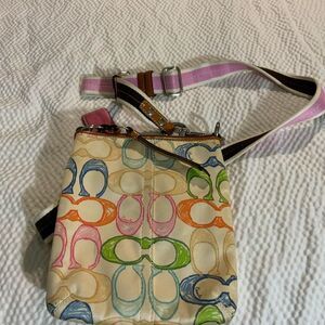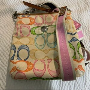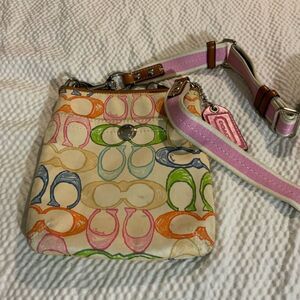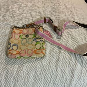 COACH Crossbody Signature C white & Pink Jacquard Adjustable Strap
