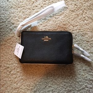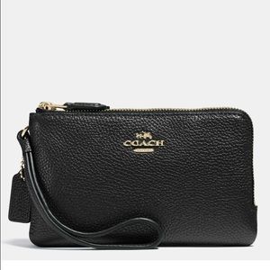 🎁COACH DOUBLE CORNER ZIP WRISTLET, PEBBLE LEATHER