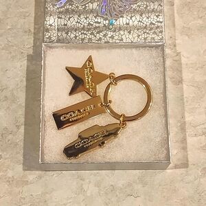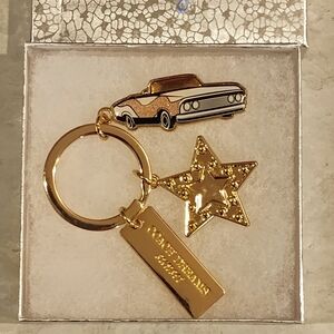 NWOT COACH DREAMERS SUNSET 3 CHARM KEY FOB WITH PINK CADILLAC GOLD STAR & BANNER KEY CHAIN / BAG CHARM.