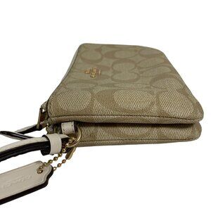 COACH Double Zip Corner Wristlet Wallet Signature Canvas + Hang Tag/Charm EUC