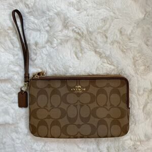 COACH Double Zip Wallet Wristlet in Signature Coated Canvas in Classic Khaki