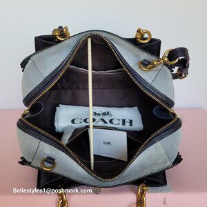BRAND NEW WITH TAGS. Ink Multi color. (Dark Navy Blue & Light Blue Suede) Authentic Coach satchel with room for your essentials plus two exterior slip pockets with magnetic closure for easy organization and added convenience. Crafted of a mix of smooth leather, embossed leather and suede finished with intricate whipstitch detailing, added detail on the handles. Features a functional 3-compartment design for easy organization, comes with a long strap for shoulder or crossbody wear.