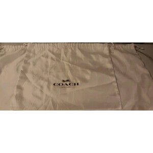 The Coach Dust Bag Covers in white are stylish and practical accessories for women's handbags. Made of lightweight satin material, these reusable dust bags feature the iconic Coach logo, adding a touch of designer detail to your collection. The larger size measures 23" x 19" while the smaller one is 13'x11', both featuring drawstring closure for easy storage and travel. Perfect for keeping your handbags clean and protected in style, these dust bag covers are a must-have for any fashion-forward individual.
