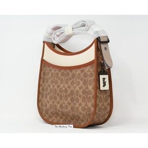 COACH EMERY Crossbody Colorblock Tan Signature Canvas Chalk Leather 686 NWT $395