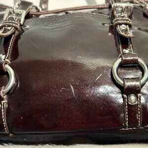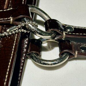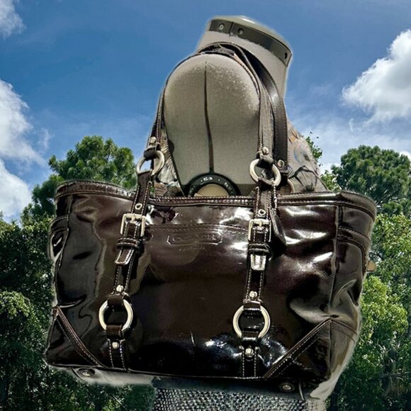 COACH East West Gallery Tote Patent Leather Brown Silver 10380 Clip Closure Tag