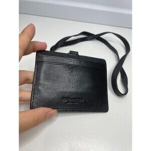 COACH East West Lanyard ID Case Badge Holder in Black Sport Calf Leather 63629