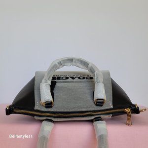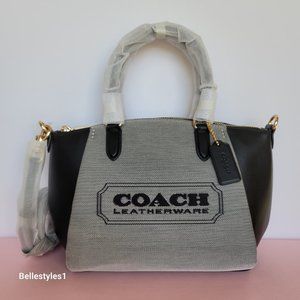 COACH Elise Badge Satchel In Jacquard & Refined Leather- Salt Black color ⭐