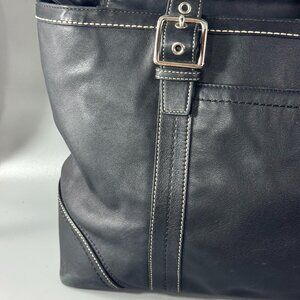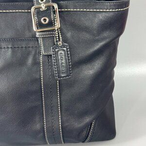COACH F12609 XL Hamptons Black Leather Travel Business Tote Carryall Bag