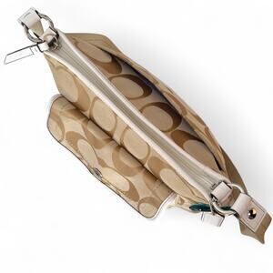 COACH F16558 Signature Kyra Daisy Jacquard Crossbody File Bag Beige Logo Silver