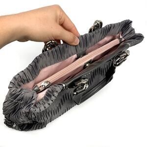 COACH #F20050 Ashley Gathered Carryall Satchel Bag Grey Satin