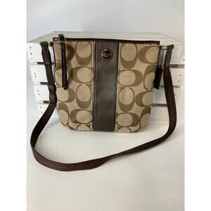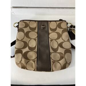 COACH F21905 MEDIUM TAN, BROWN SIGNAUTE CANVAS CROSSBODY BAG
