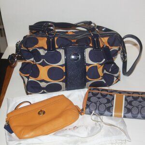 COACH F25184 Linear Stripe Satchel Purse SUPER RARE with Wallet and wristlet