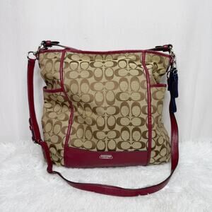 Coach F30341 signature C park hobo silver khaki crimson red crossbody purse