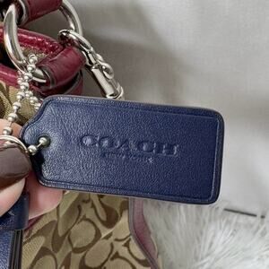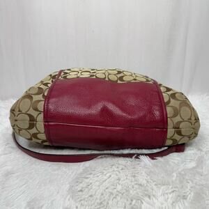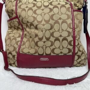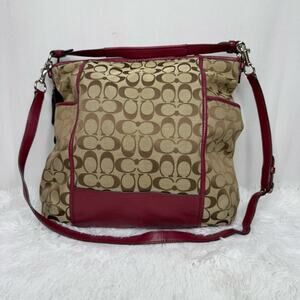 COACH / F30341 signature C park hobo silver khaki crimson red crossbody purse