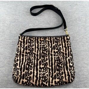 - COACH F31686 - Ocelot Brown & Beige Print Canvas Slim Crossbody Bag, COMES AS IT IS PICTURED. DOES NOT COME WITH COACH LOGO TAG, HAS SOME STAINS ON THE INSIDE. HAS SOME SCRATCHES AT THE CORNERS. SEE PICTURES. COMES AS IS.