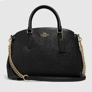 COACH F32017 SAGE CARRYALL Patent Black Crossgrain Leather, NWOT