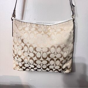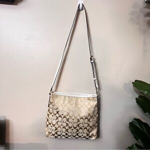 COACH F36378 Signature Classic Brown Leather/Khaki Jacquard Crossbody Bag