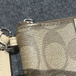 COACH F58035 Corner Zip Wristlet Signature Khaki PVC Ivory Leather Stripe