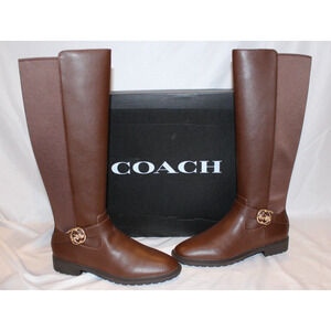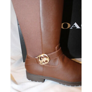 COACH FARRAH TALL LEATHER RIDING BOOTS WALNUT BROWN NIB $225