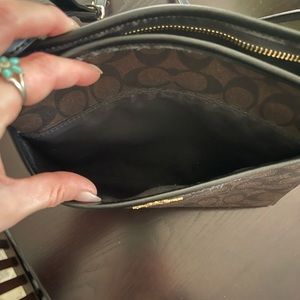 FILE CROSSBODY IN SIGNATURE CANVAS. In brown and black leather. Just like new, minor wear and tear. Selling for $65! No low ballers please, originally purchased doe 150 last year and it’s had minimal use.