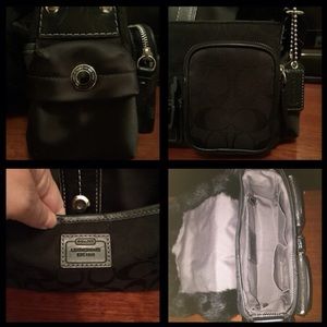 Like new, Fur & Canvas Shoulder or Cross-body, FEATURES: Flap Over-Click Closure, 2-Side pockets W/Snap closure, Full Length Back Pocket W/Magnetic closure, 2-Exterior Front Zip Pouches. i/s Cell/Multifunctional Pocket; 3.5" Deep, 1-Zip pocket 4"Deep x 6"L. MEASUREMENTS: 13"L x 9"H x 4.5"W. 20" adjustable to 10" Strap Drop. LIMITED EDITION