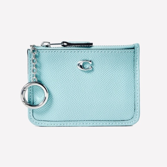 COACH Faded Blue Crossgrain Leather Mini Skinny ID Holder