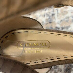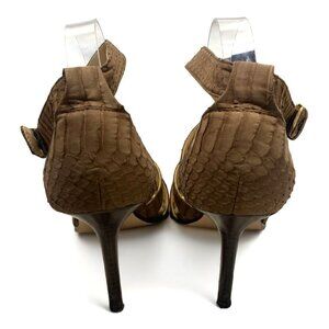 COACH Fawn Strappy Sandals Stiletto Heel Brown Snakeskin Print Leather Sz 9.5