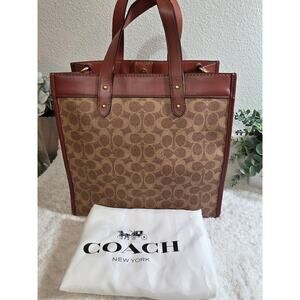 Whether you're searching for a Coach travel tote or a signature canvas bag, this Coach Field Tote in Tan Truffle Rust is a stylish and practical choice. Ideal for daily use or as a chic travel companion, it combines iconic branding with modern utility.