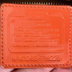 Tangerine stripe with fabric crossbody strap. Open slip pocket (large) on bag front, - and 1 zip along with 2 slips inside bag.